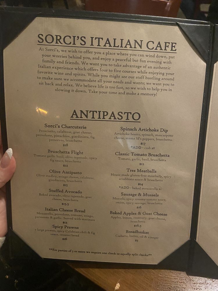 Located in Sumner, WA, Sorci's Italian Cafe & Enoteca offers a delightful dining experience with a range of amenities, including outdoor seating, free Wi-Fi, and a full bar. Customers rave about the personalized service, delicious food, and cozy ambiance. The butternut squash ravioli, stuffed avocados, and handmade gelato are particular highlights, showcasing the culinary skill and attention to detail at Sorci's. Whether you're looking for a comforting meal or a leisurely happy hour, Sorci's is the perfect spot. Don't miss the opportunity to savor their Italian Cheese Bread, Zucchini Parmesan, or Cheese Manicotti with spicy sausage. Make a reservation and treat yourself to a memorable dining experience at Sorci's Italian Cafe & Enoteca.